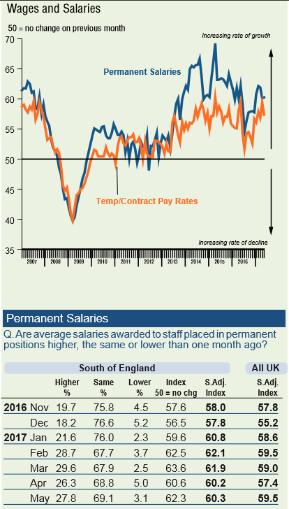 Average starting salaries for staff in the South of England continued to increase in May. The rate of inflation was little-changed from the previous month and sharp overall. Moreover, the pace of increase was the second-fastest of the five UK regions, fractionally behind the North of England. Recruitment agencies that noted higher starting salaries generally attributed this to a lack of suitable candidates.